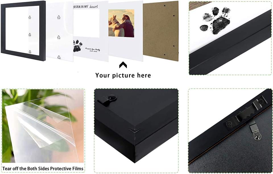 Cornice Nera per Foto con Impronta di Zampa di Animale Domestico e Tampone d'Inchiostro 'Per Sempre nel Mio Cuore' per Cani e Gatti
