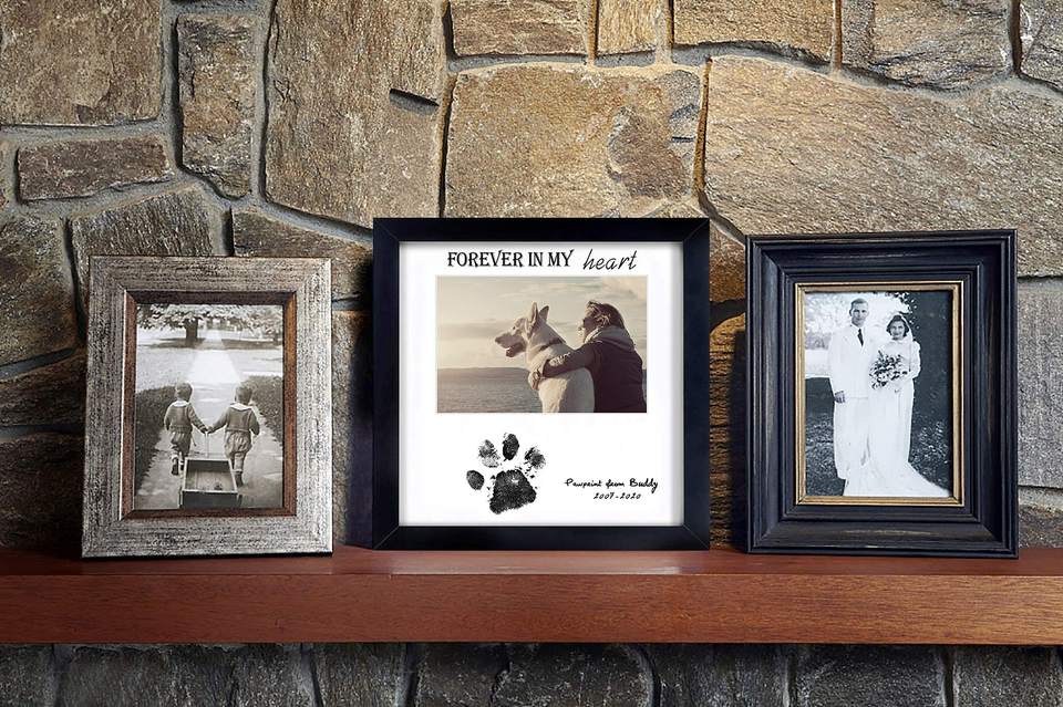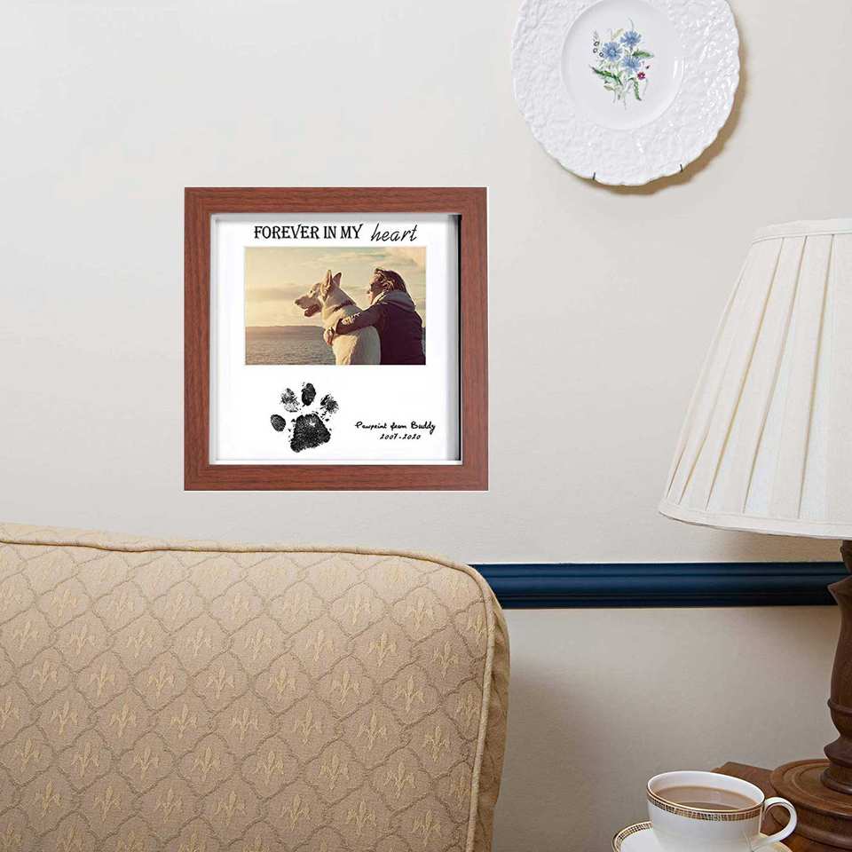 Cornice Portafoto per Impronte di Zampe di Animali Domestici in Noce con Tampone d'Inchiostro 'Per Sempre nel Mio Cuore' per Cani e Gatti