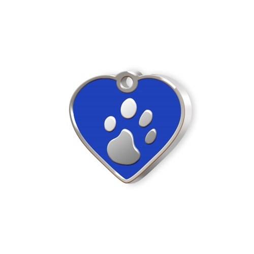 Targhetta identificativa per animali domestici, mini, blu, a forma di cuore con impronta di zampa, per cani e gatti