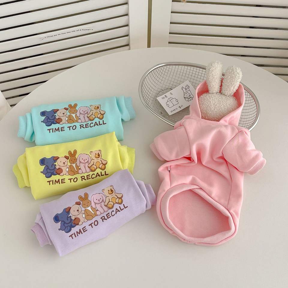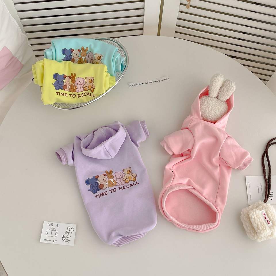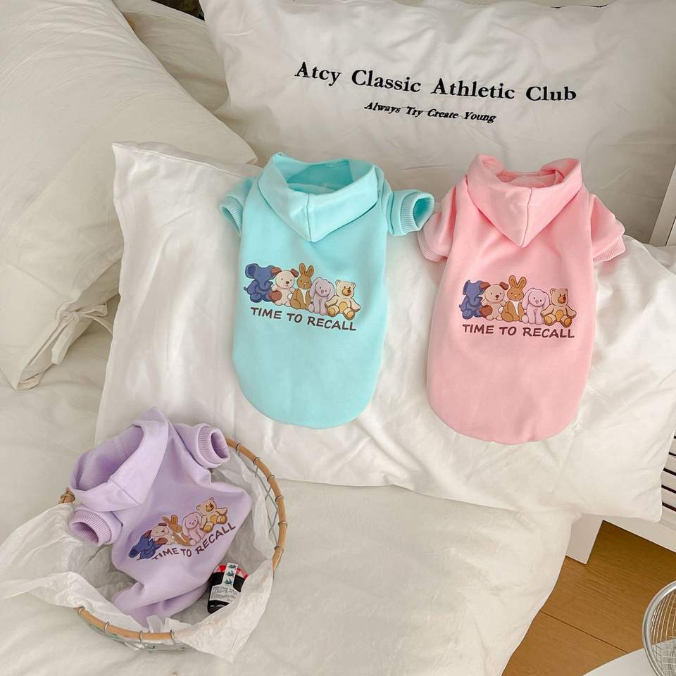 Pet clothes cat cartoon printed long sleeved hooded sweatshirt soft and warm cute pet in stock