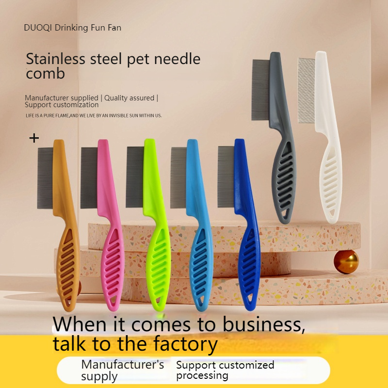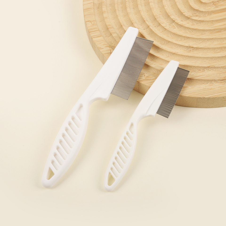 Pet flea comb with densely packed, encrypted stainless steel pins to eliminate fleas and pests for dogs and cats.