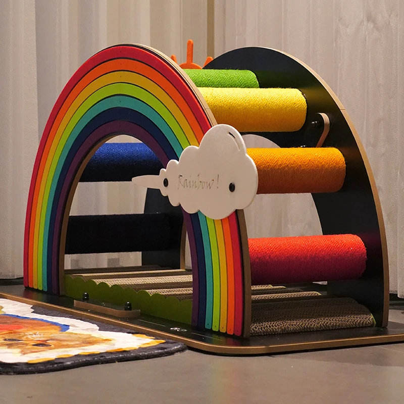 Tiragraffi per Gatti Petree Rainbow in Legno Massiccio e Plastica, Struttura per Arrampicata con Sisal, Resistente, Confezione in Cartone