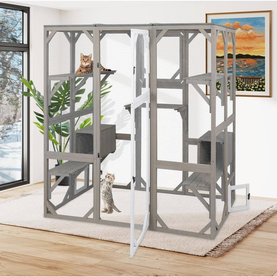 Petscosset 71 "Catiosset all'aperto recinzione per gatti grande casetta in legno con 5 piattaforme