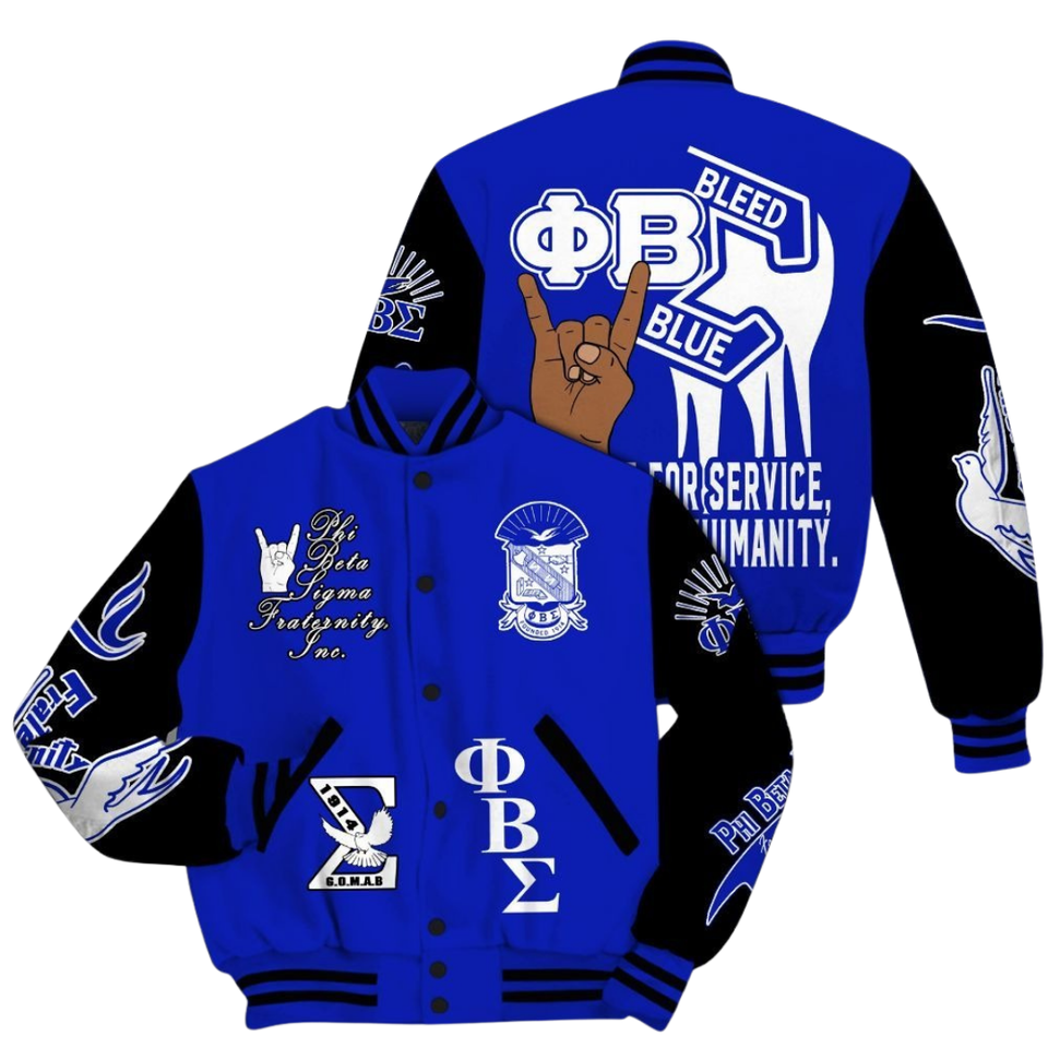 Giacca da Varsity Phi Beta Sigma 1914 blu bianco greco vita confraternita ciniglia Patch stile College giacca Letterman