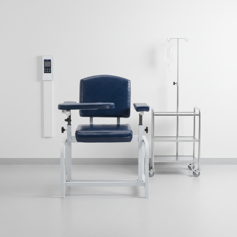 Poltrona per Flebotomia con Braccioli Regolabili e Imbottitura Comfort, Design Cinese, Struttura in Metallo