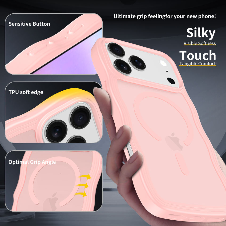 Custodia per iPhone 17 Pro Max con Motivi Ondulati Magnetici, Cover Opaca in TPU+PC per iPhone 16 15 14 13 12 Pro Max, Rosa