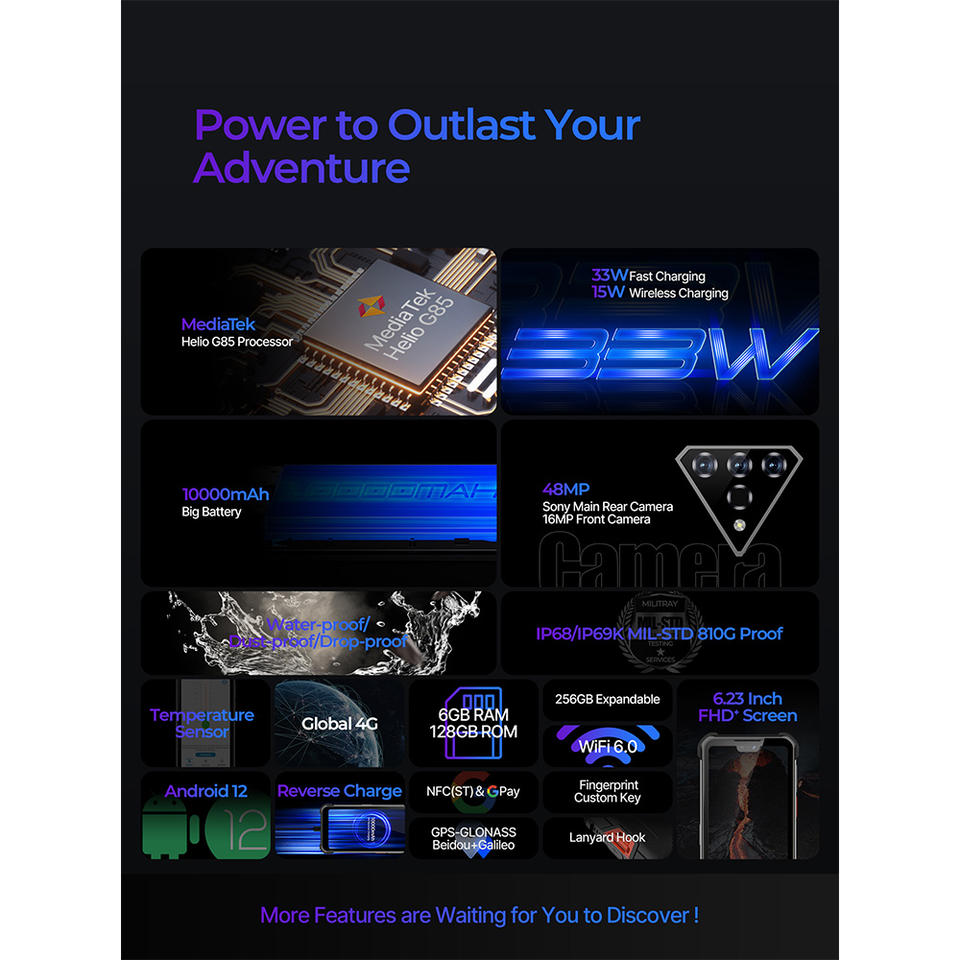 Phonemax P10 Smartphone Robusto Android 4G con Batteria Grande da 10000mAh, Ricarica Rapida 33W/Ricarica Wireless 15W