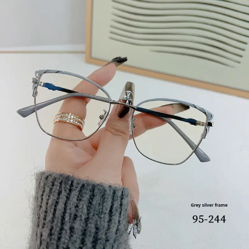 Photochromic Anti-blue Light Glasses, Cat's Eye Shaped Metal Frame, Glasses Supplier Wholesale, Suitable for All Face Shapes
