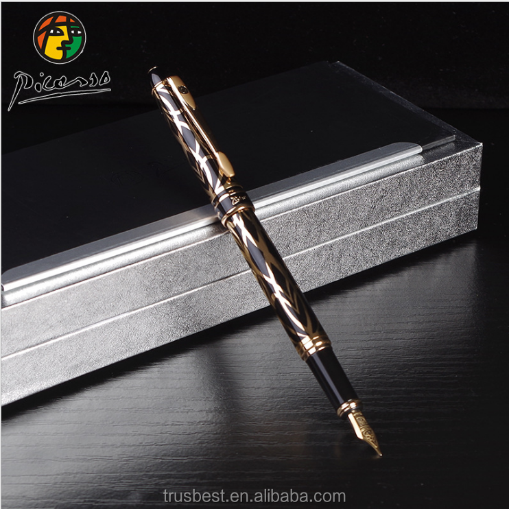 Picasso 901 Fountain Pen, Gold-plating with Carved logo Calligraphy Ink Fountain Pen