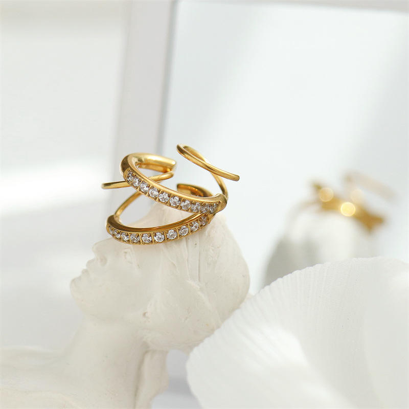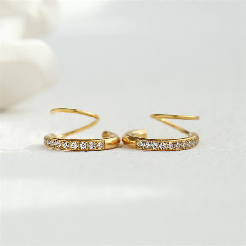 Piercing Jewelry Non Tarnish Stainless Steel 18k Gold Plated Spiral Round Earring Zircon Double Helix Twist Sutd Earring YF3632