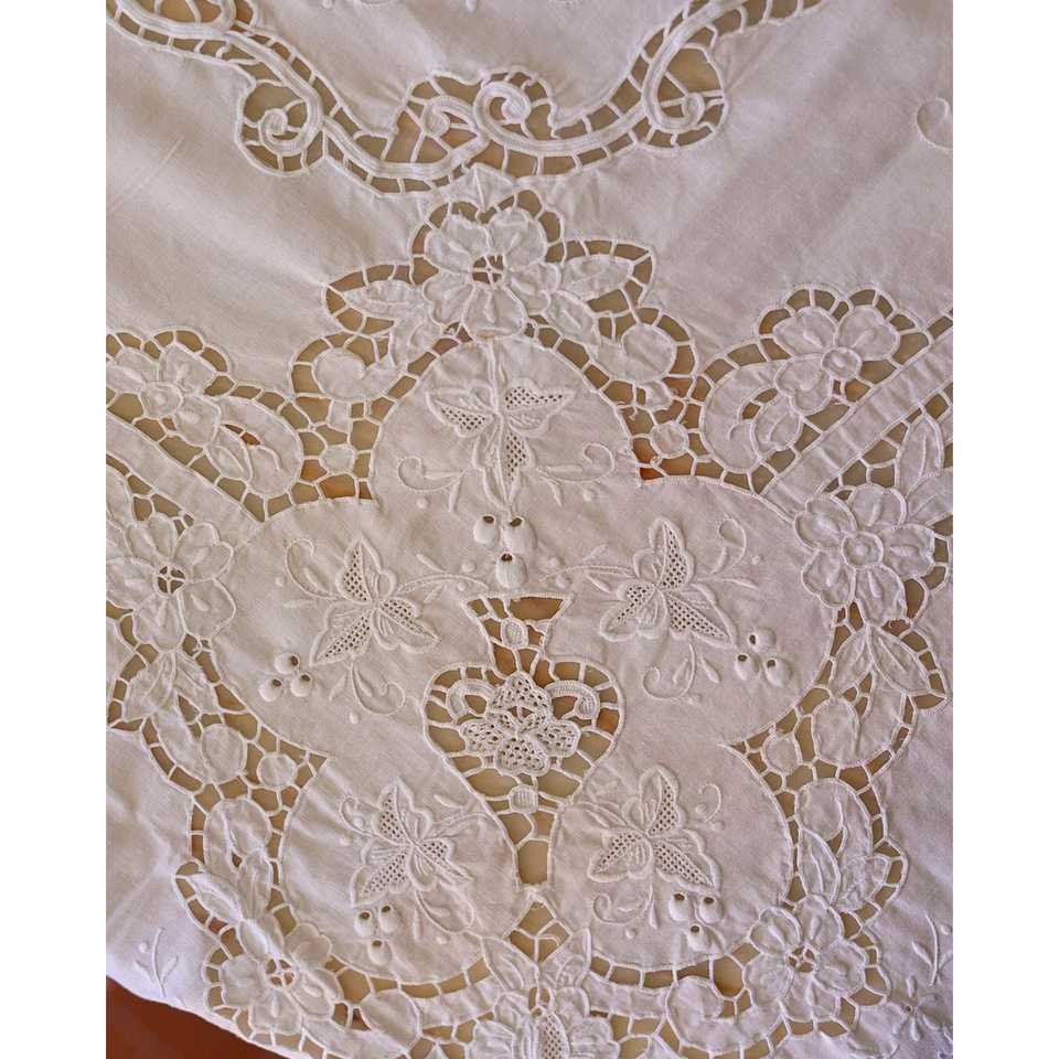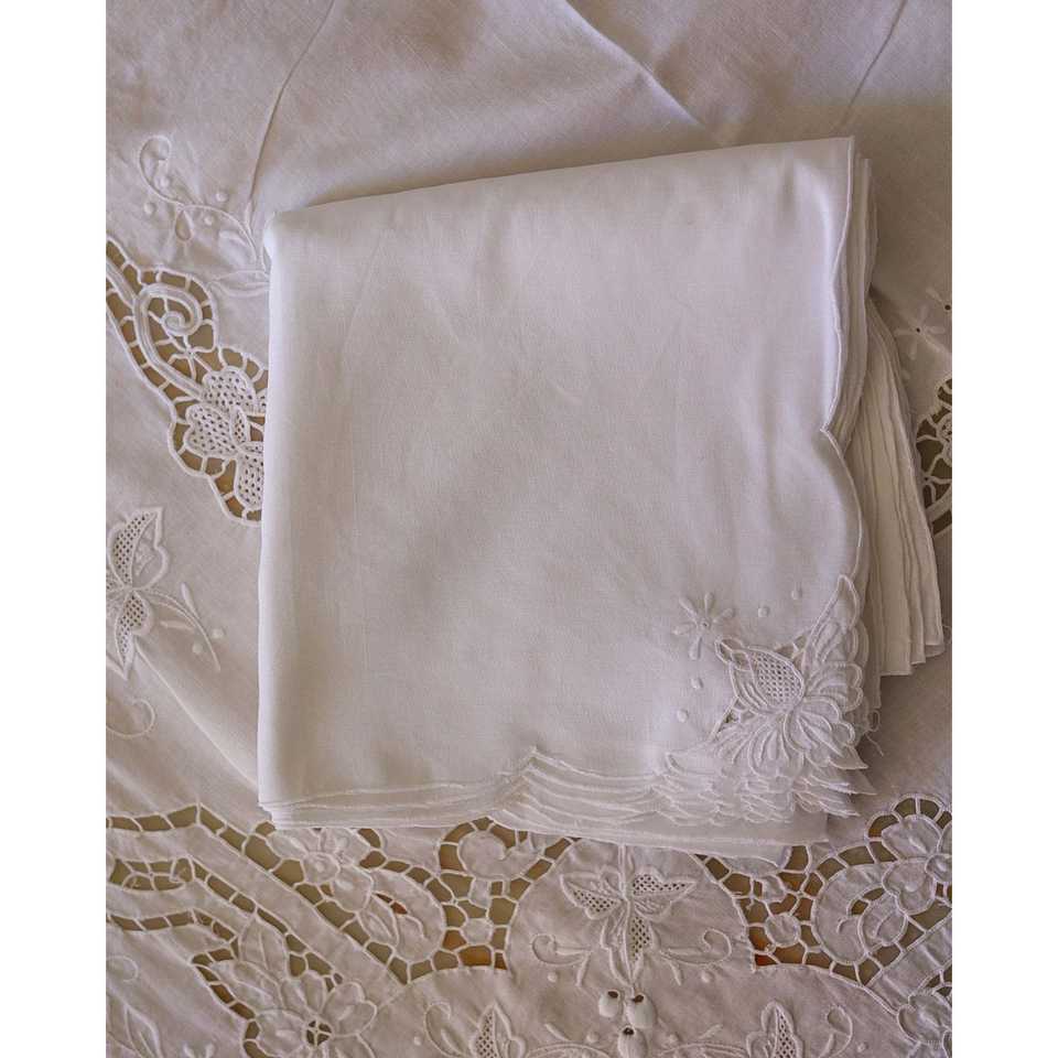 Pietrochianese Burano Art Nouveau Style Carved Linen Tablecloth with 12 Napkins