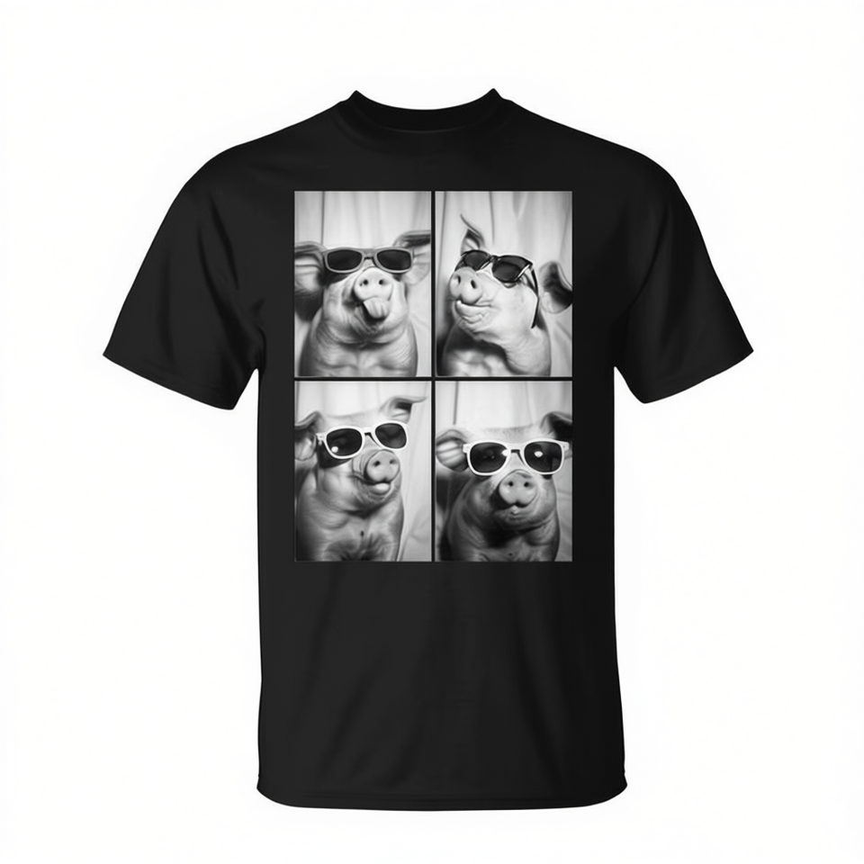 T-shirt con stampa digitale di maiali con occhiali da sole, unisex, a maniche corte, girocollo, promozionale