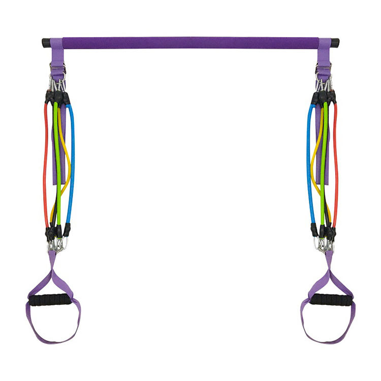 Pilates Stick Yoga Bar Resistance Bands Set With Handles Door Anchor Ankle Straps Carry Bag TPE