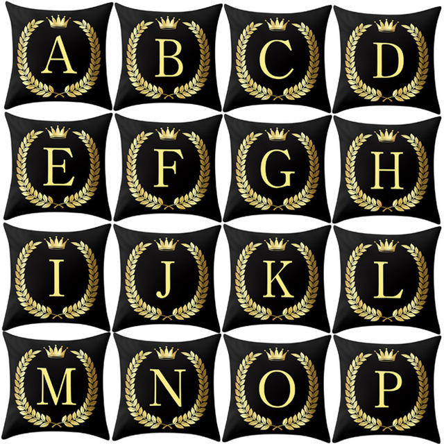 Fodera per cuscino federa per lettera in oro nero fodera per cuscino per divano alfabeto inglese decorazioni per la casa almofadas cojines decorativos para Sofa