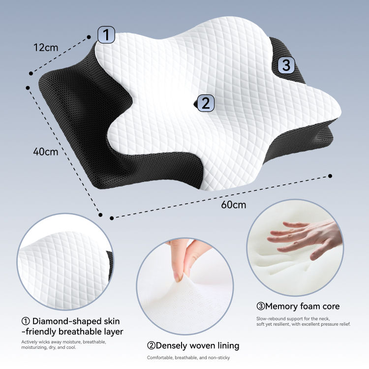 Cuscino in Memory Foam Cervicale per Alleviare il Dolore al Collo, Cuscino Ortopedico Traspirante in Memory Foam Sagomato per un Sonno Confortevole
