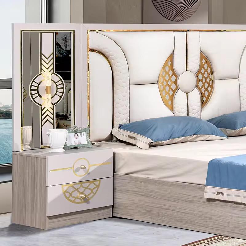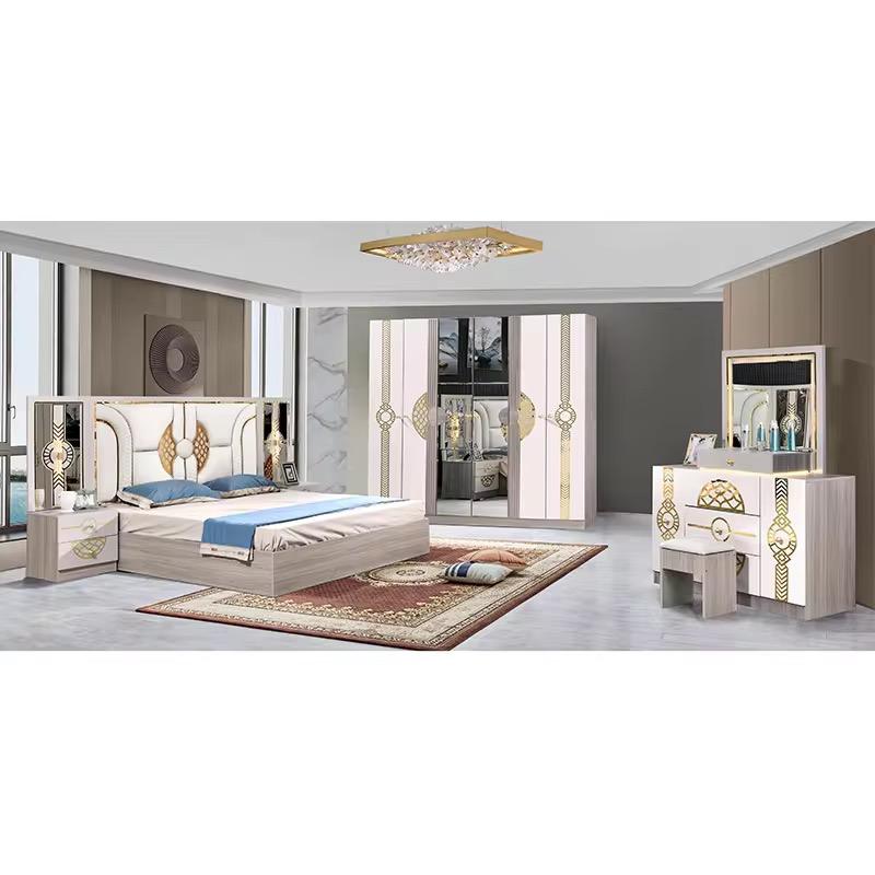 Set Camera da Letto Elegante Pinar Stile Turco 2025 di Alta Qualità con Testiera Illuminata e Armadio Specchiato in Legno Smart Vendita Calda