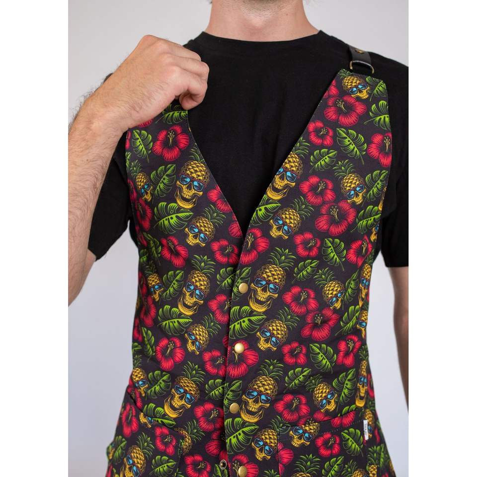 Gilet con decorazione a teschio di ananas e bottoni per abbigliamento esterno