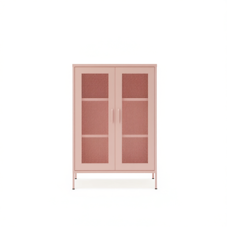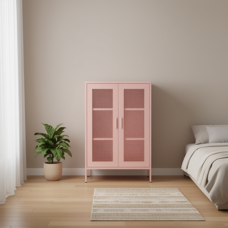 Pink Steel Storage Cabinet 31.5x13.8x40 Inches Durable Home Furniture Modern Minimalist Design