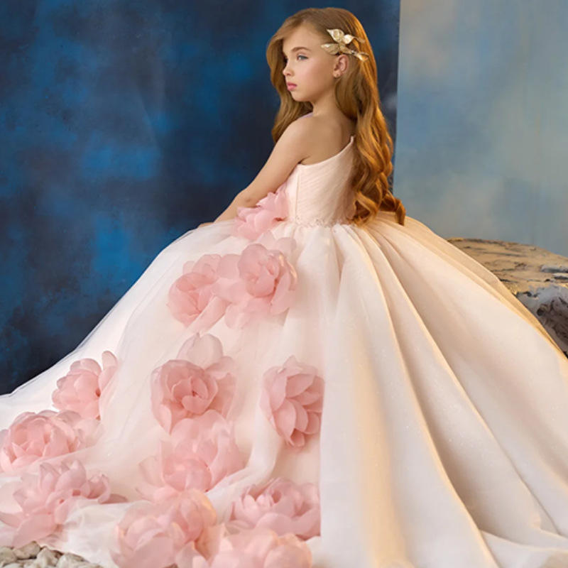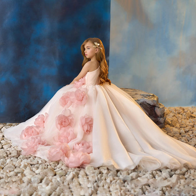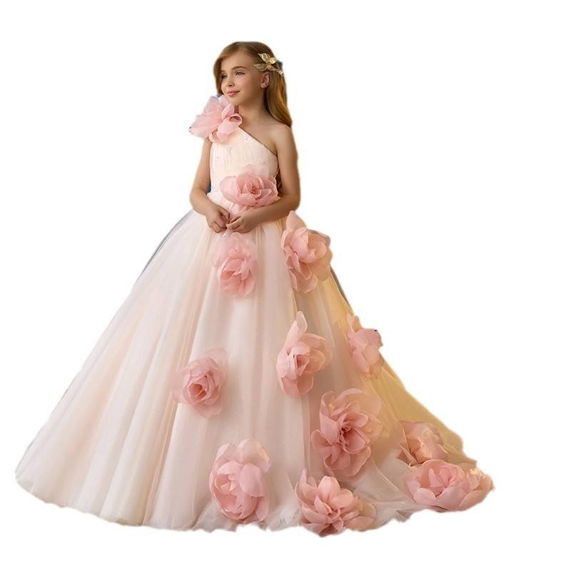 Rosa ragazza fiore 3D abiti festa per bambini matrimonio abito da bambino indossare piccola damigella d'onore bambina abito da ballo abito da ballo