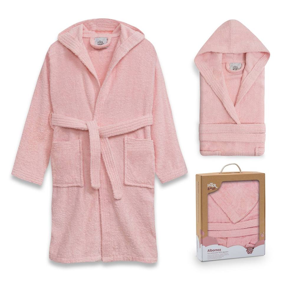 Pink Bathrobe for Children Plain Solid Color Terry Cloth Size S-10-12 in Gift Box for Bathroom