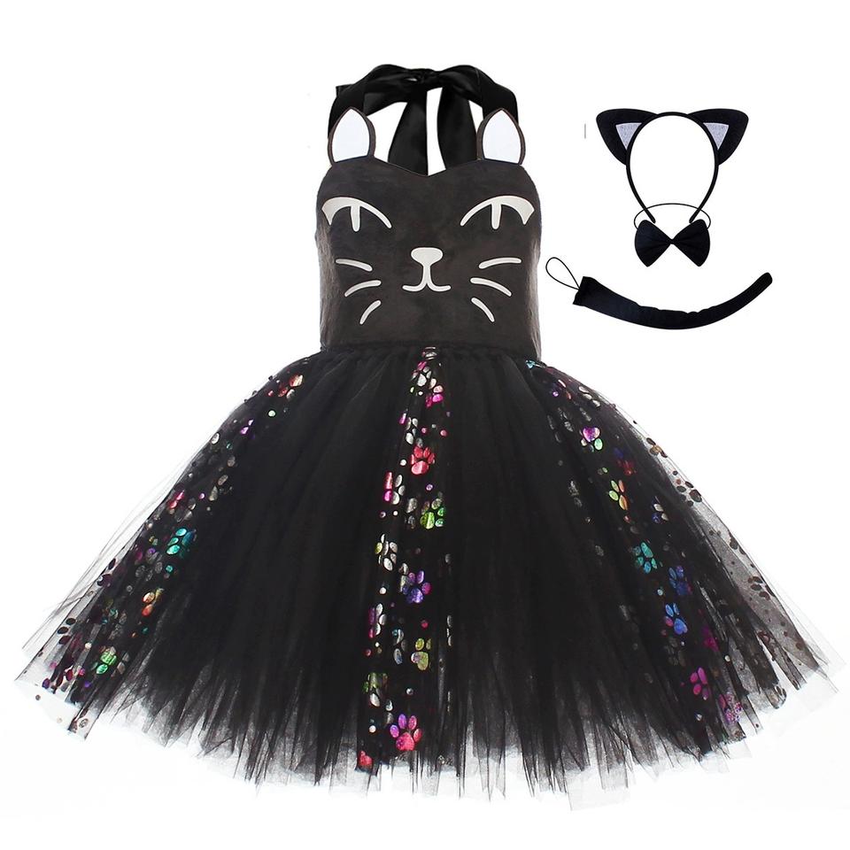 Vestito Tutu Rosa e Nero con Gatto per Bambine - Costume di Halloween