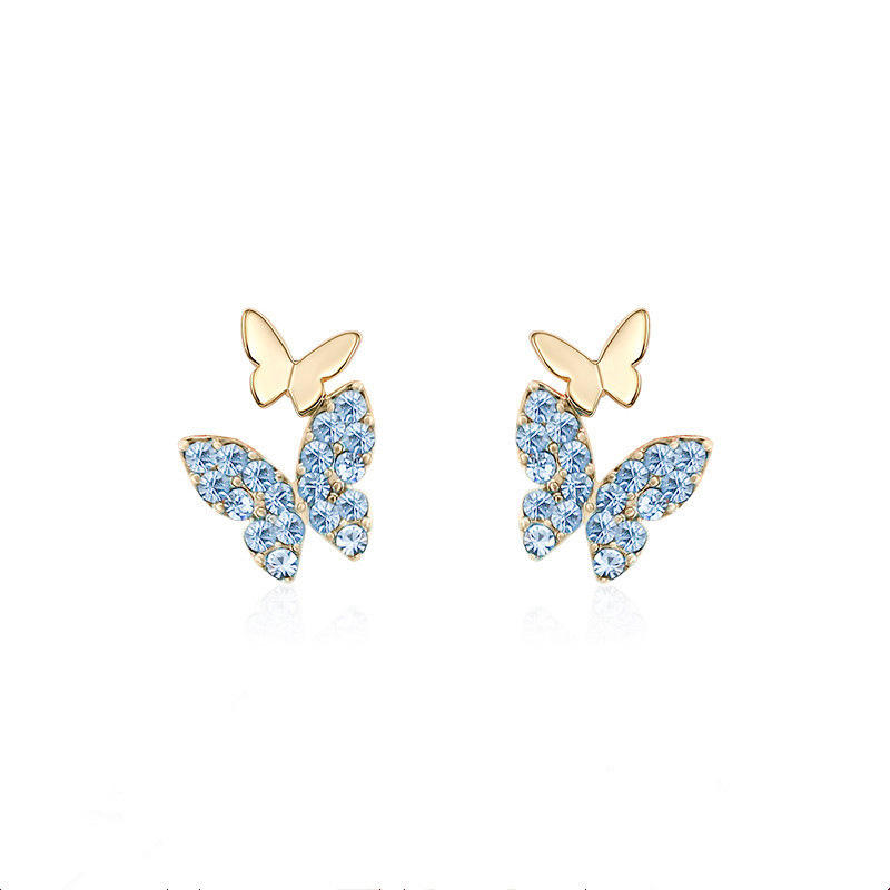 Orecchini a perno a forma di farfalla rosa placcati oro con strass di cristallo, gioielli alla moda da donna, regalo, montatura in lega