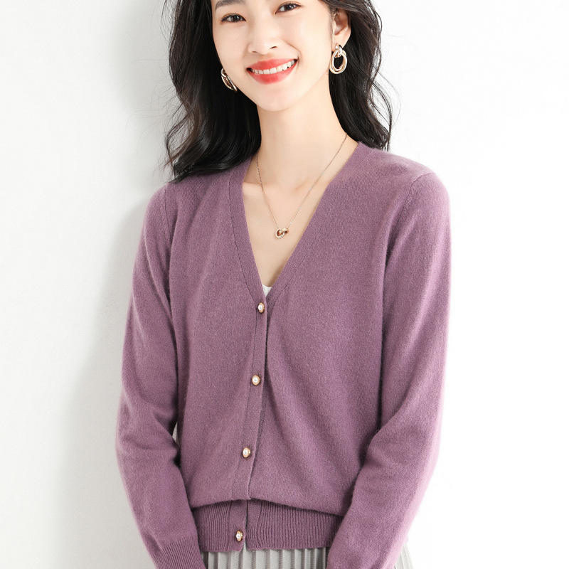 Cardigan da donna in misto lana di colore rosa Cardigan semplice in maglia di base Cardigan cappotto con logo personalizzato etichetta maglione da donna