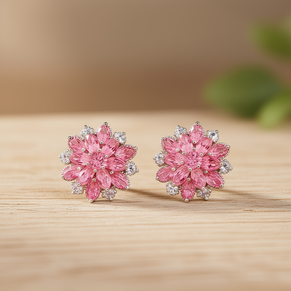 Pink Crystal Flower Stud Earrings Marquise Cut Claw Setting Zinc Alloy Women's Wedding Fashion Jewelry E377