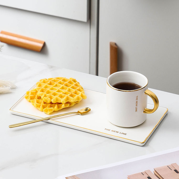 Rosa su ordinazione golden rim elegante rettangolo piattino tazza di latte