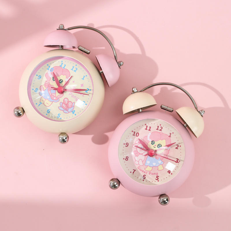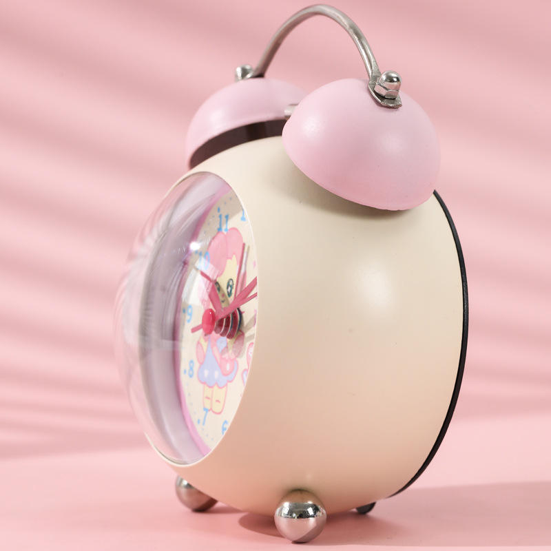Sveglia da Tavolo Meccanica Rotonda Rosa Carina, Mini Orologio Ultra-Suono per Studenti delle Scuole Medie