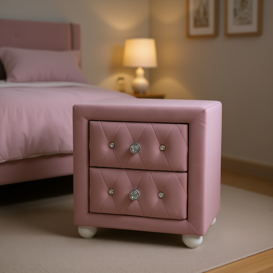 Pink Fabric Upholstered Nightstand With 2 Drawers Modern Bedroom Furniture