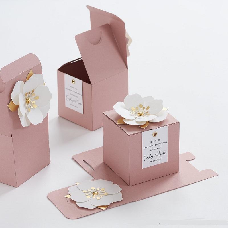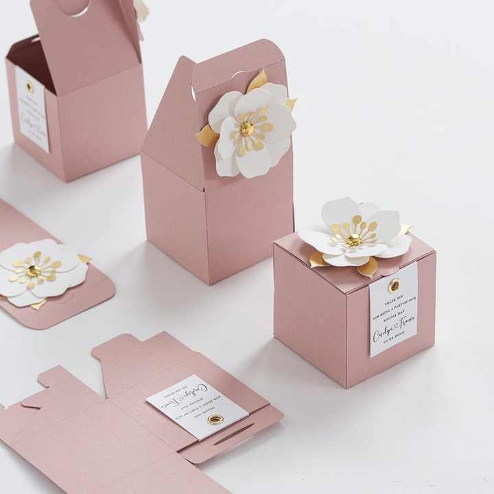 Scatole bomboniere rosa con decorazioni floreali per matrimonio, festa nuziale, battesimo, compleanno e anniversario