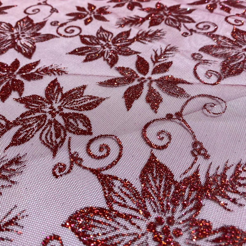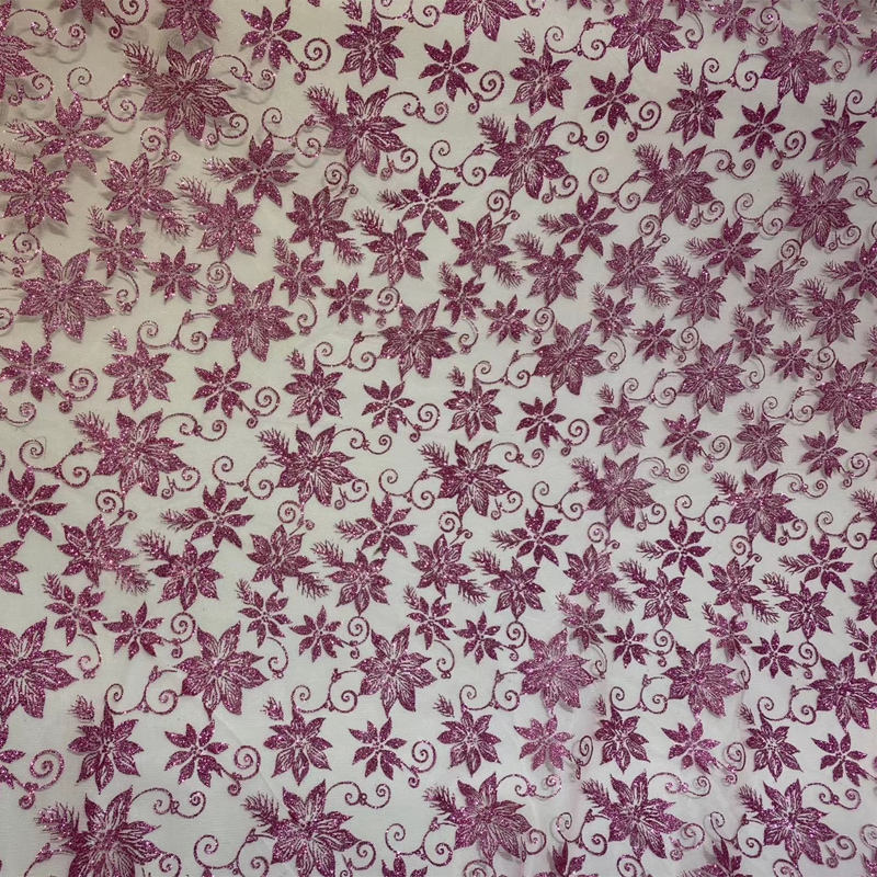 Tulle glitterato con motivo floreale rosa per abito da sposa