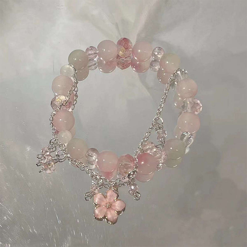 Bracciale con catena di perline e ciondolo a forma di fiore rosa, gioielli dolci per le donne, regalo alla moda