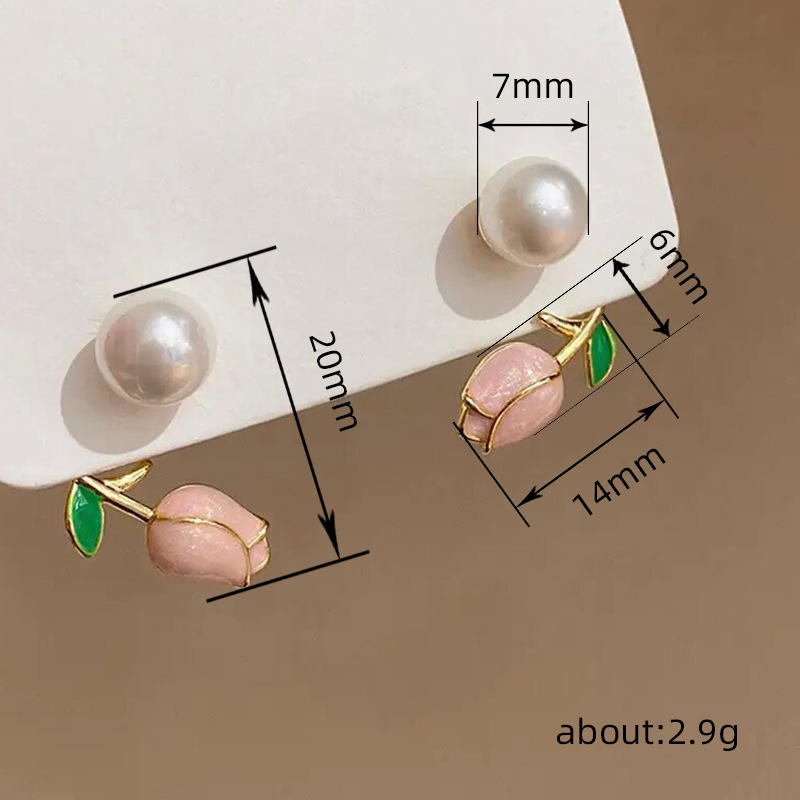 Pink Flower Stud Earrings Imitation Pearl Gold Plated Alloy Women's Cute Gift Jewelry