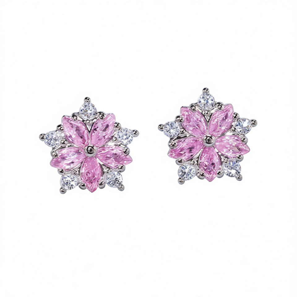 Pink Flower Stud Earrings Marquise Cut Crystal Rhinestone Claw Setting Alloy Women's Romantic Party Jewelry