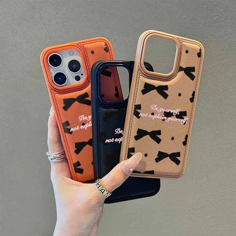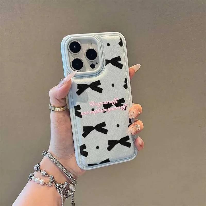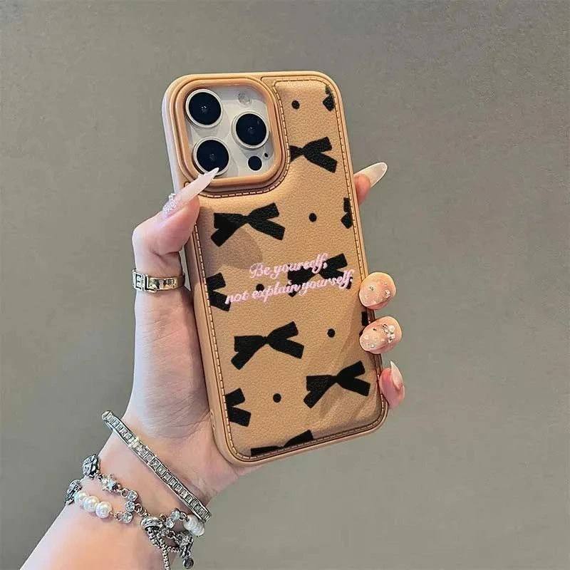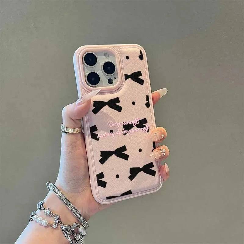 Cover Morbida Rosa con Fiocco e Slogan per iPhone 17 16 15 14 11 12 13 Pro Max Plus 17 Air in Ecopelle TPU