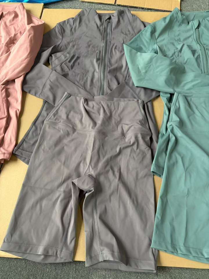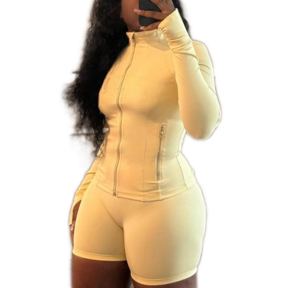 Giacca con cerniera in oro rosa e pantaloncini sportivi da palestra da donna Set sportivi Activewear abiti da allenamento in due pezzi Set abbigliamento donna