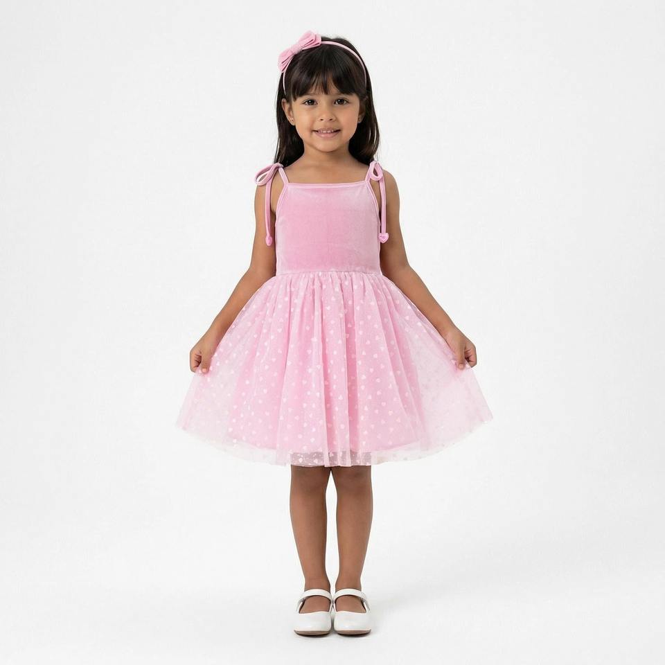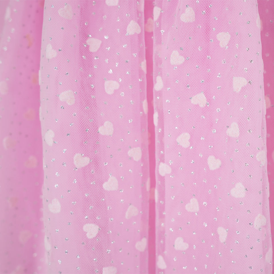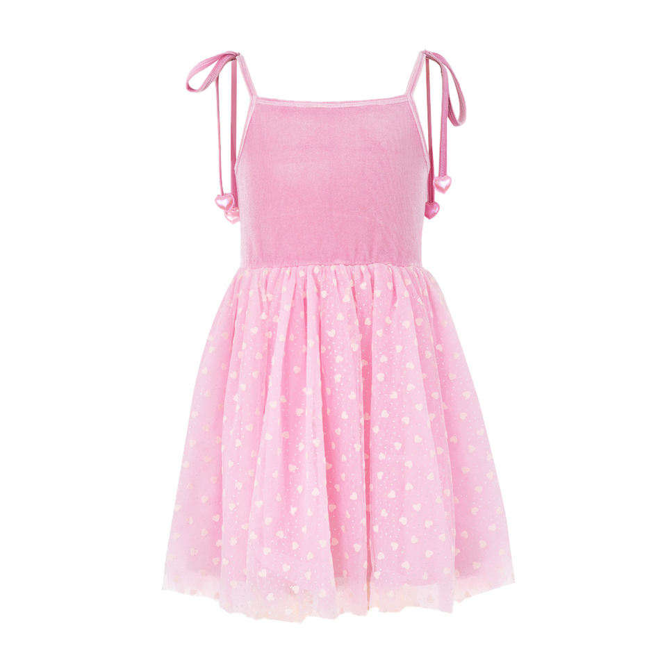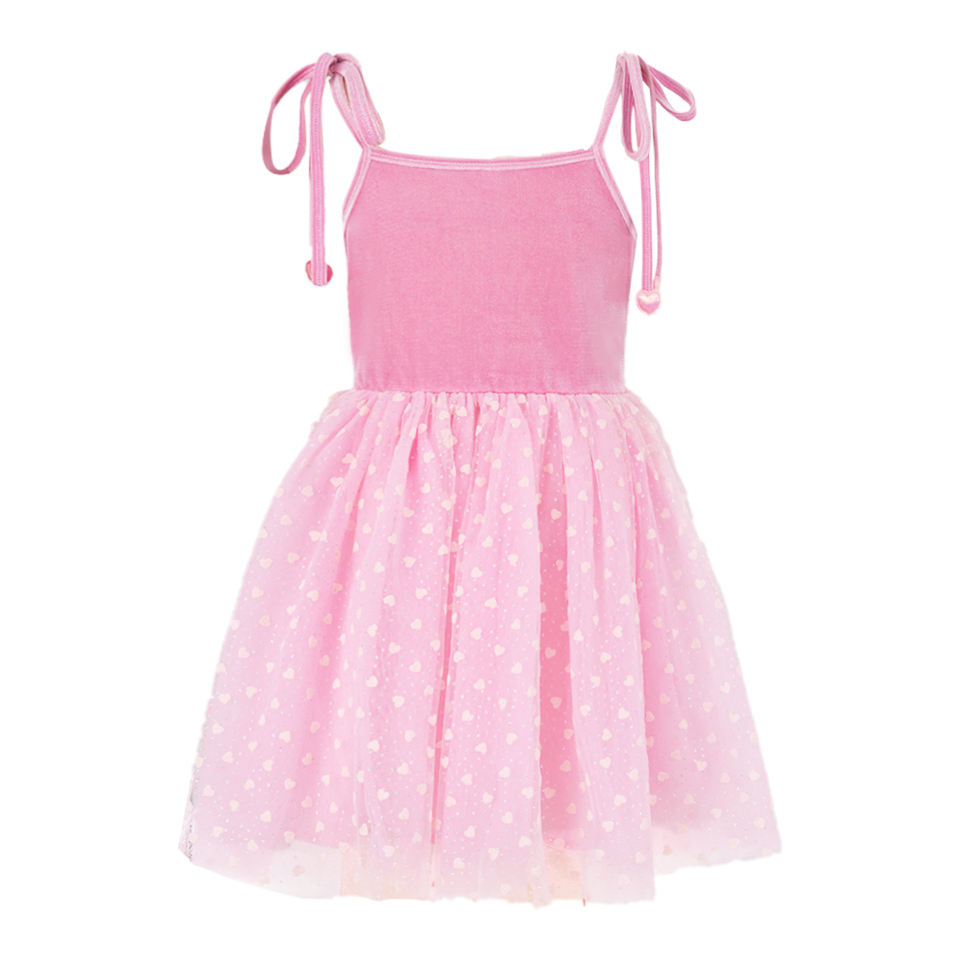 Abito in tulle con stampa di cuori rosa per bambine e ragazze, con spalline regolabili, ideale per l'estate, casual, per compleanni, feste in spiaggia.