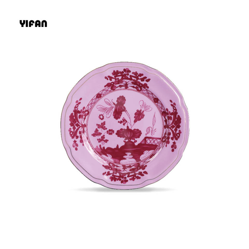 Set di Piatti Decorativi Vintage in Ceramica e Porcellana Rosa Inchiostro, Servizio da Tavola di Lusso in Bone China Stile Italiano Personalizzabile in Tutti i Colori all'Ingrosso