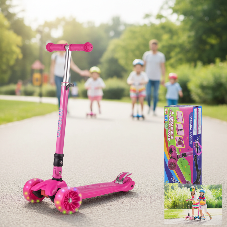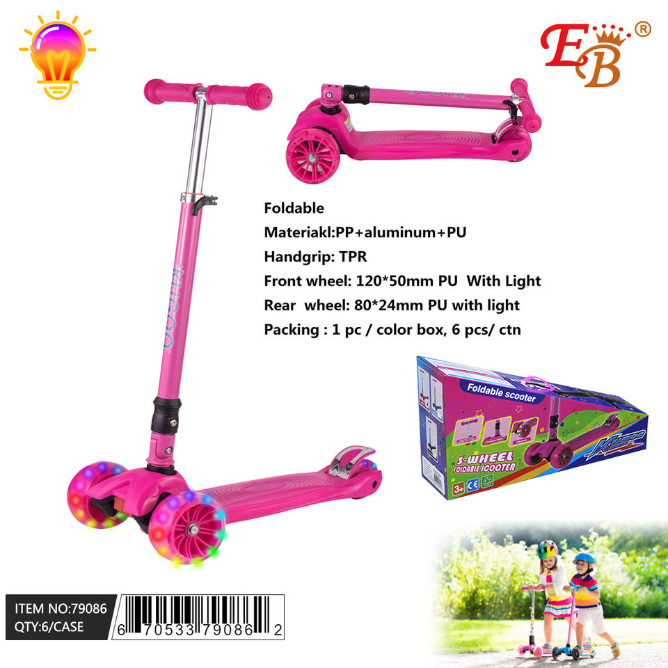 Pink Kick Push Scooter for Baby 3-Wheel Ffoldable 6PC/CS Steel Frame with PU Light for Child Tricycle