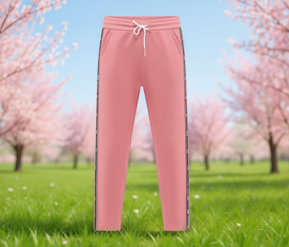 Pantaloni rosa lavorati a maglia, lunghi fino alla caviglia, con chiusura con coulisse e strisce laterali, abbigliamento casual primaverile