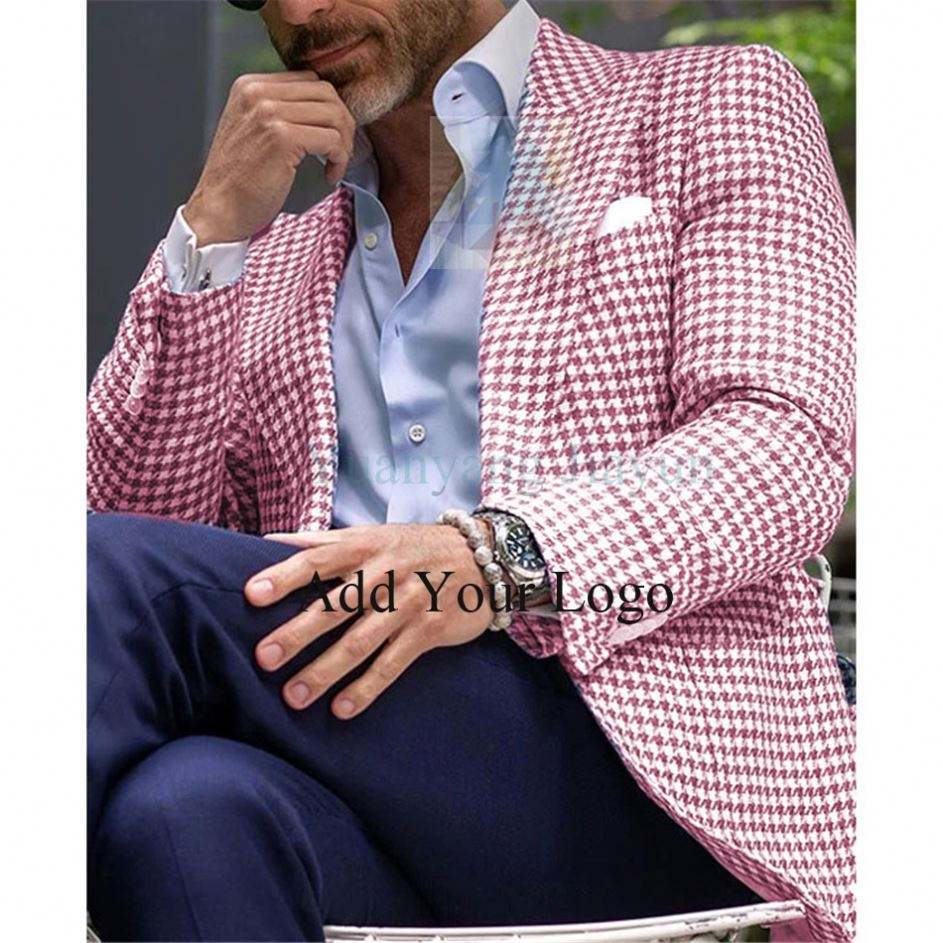 Abito da sposa in lino rosa completo completo da uomo con pantaloni monopetto estivo da spiaggia