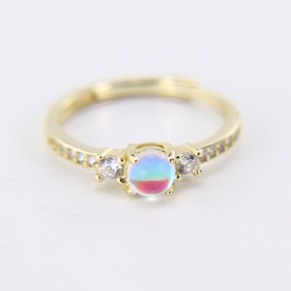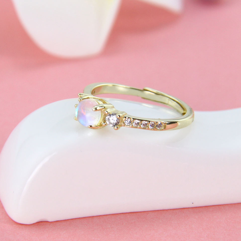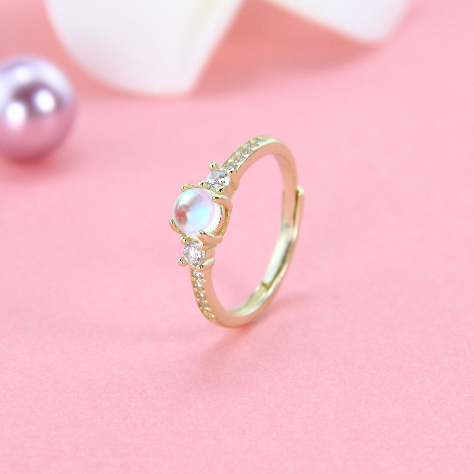 Rosa pietra di Luna 14k Placcato Oro Dei Monili di pietra di Luna Gioielli In Argento Sterling Da Sposa Solitaire Anello