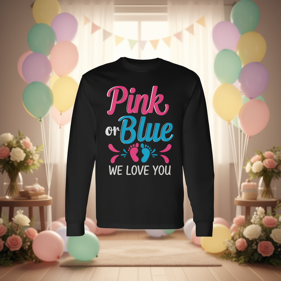 Pink Or Blue We Love You Long Sleeve T-Shirt Baby Shower Gift