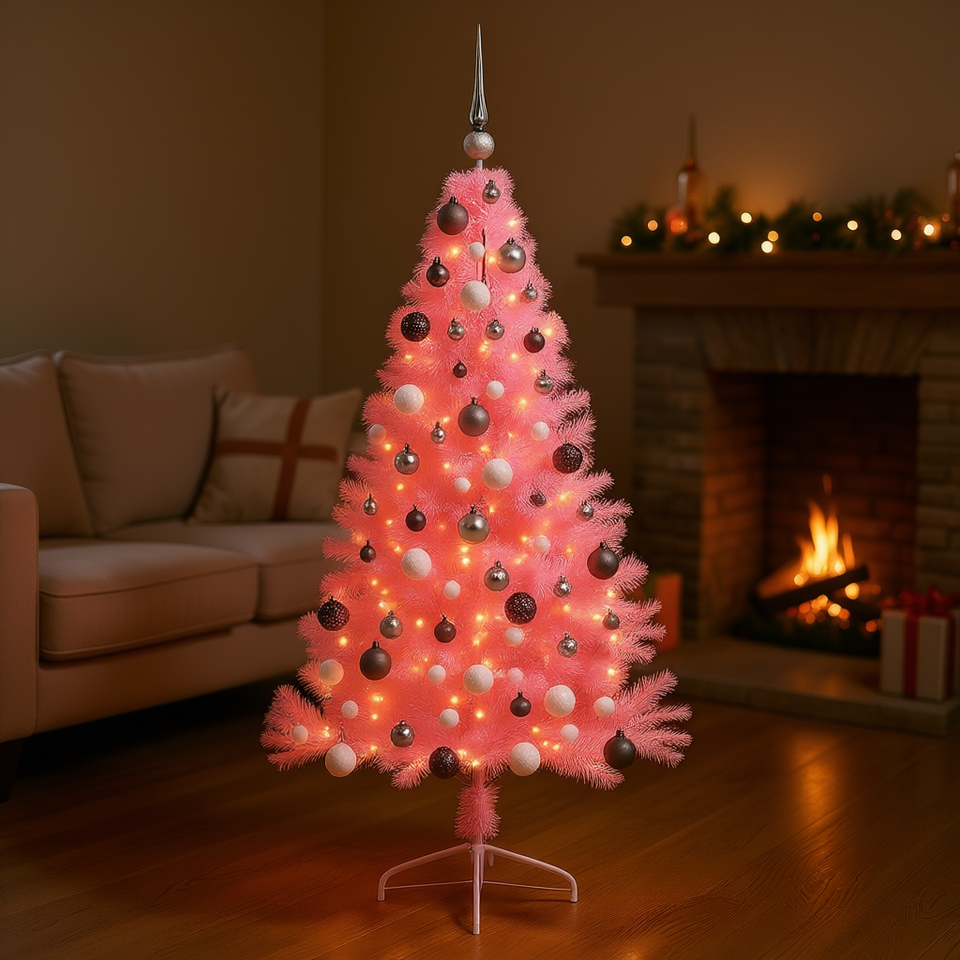 Albero di Natale Artificiale in PVC Rosa 180 cm Pre-Illuminato con 300 LED