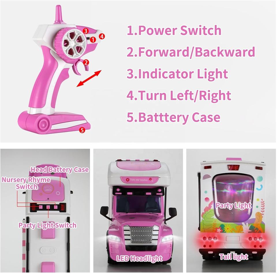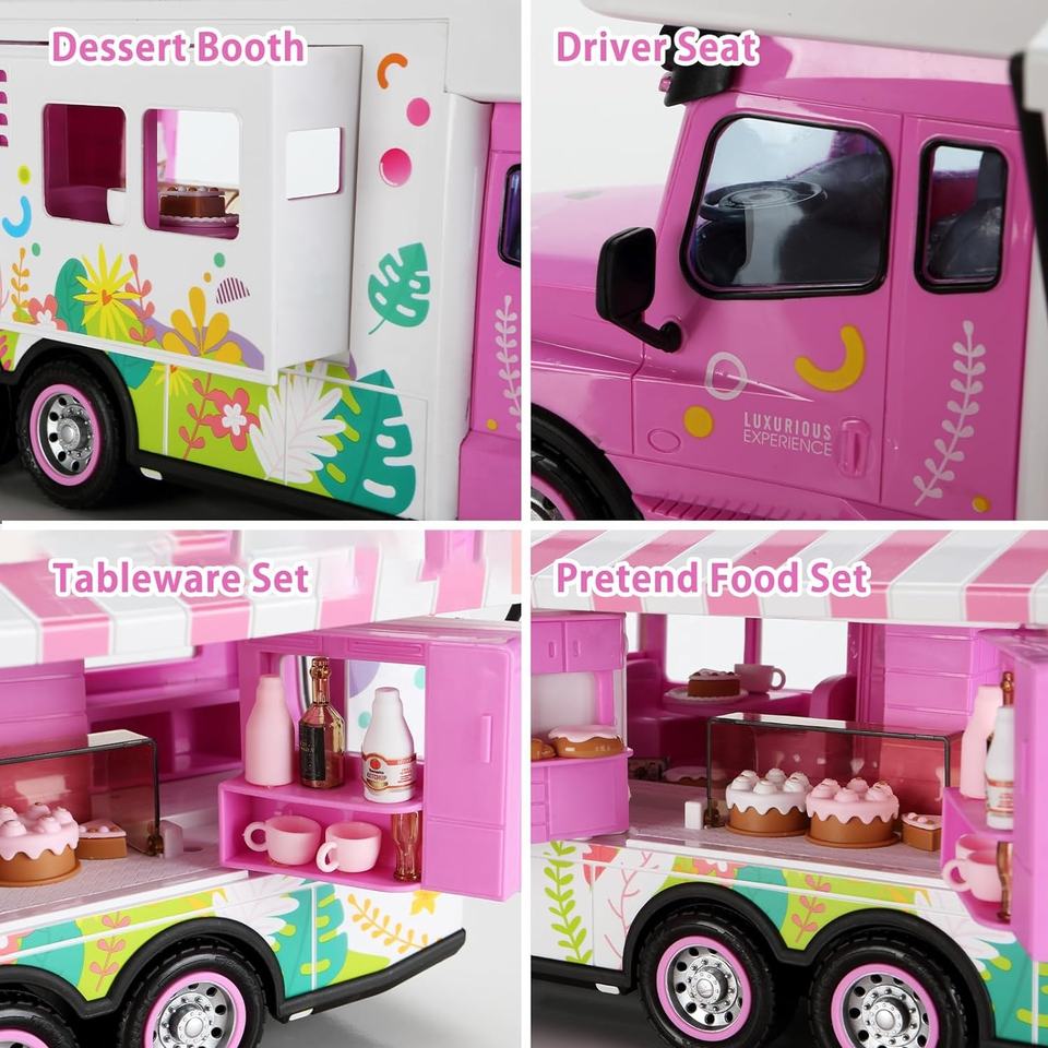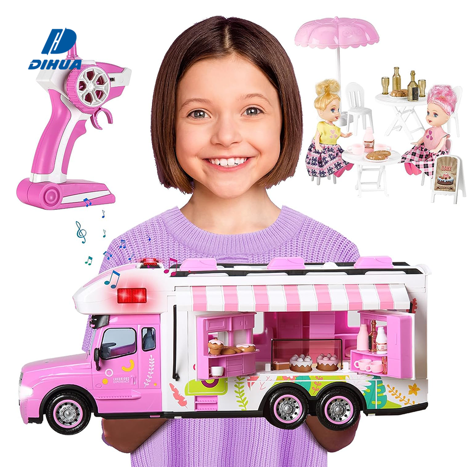 Camioncino Giocattolo RC Rosa con Luci e Porte Apribili, Set Gioco di Ruolo Telecomandato per Bambine con Accessori Cibo Finto