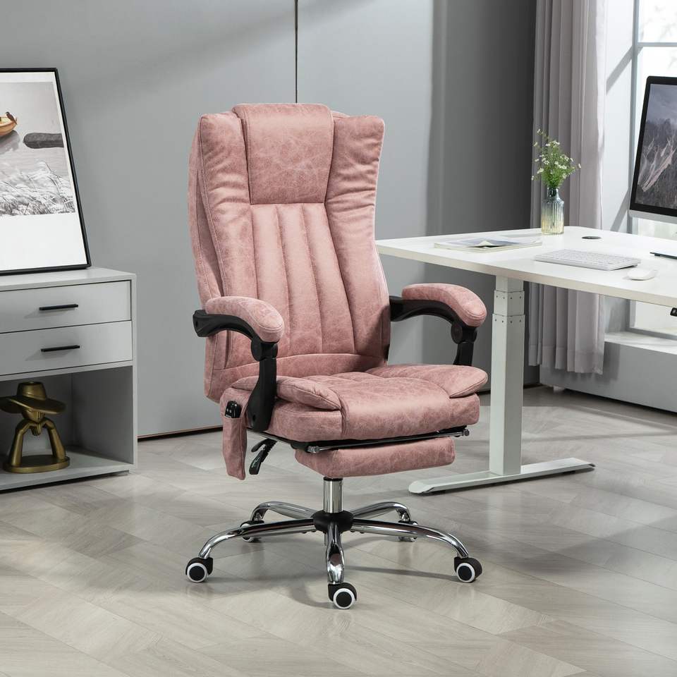 Sedia da Ufficio Rosa Reclinabile con Altezza Regolabile e Poggiapiedi, Massaggio a 6 Punti e Funzione Riscaldante