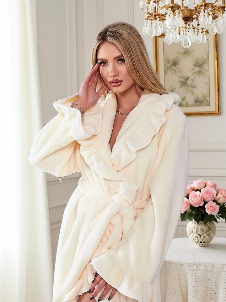 Rosa rosso morbido e caldo in pile con volant abito da sposa accappatoio da donna vestito da notte abito da casa