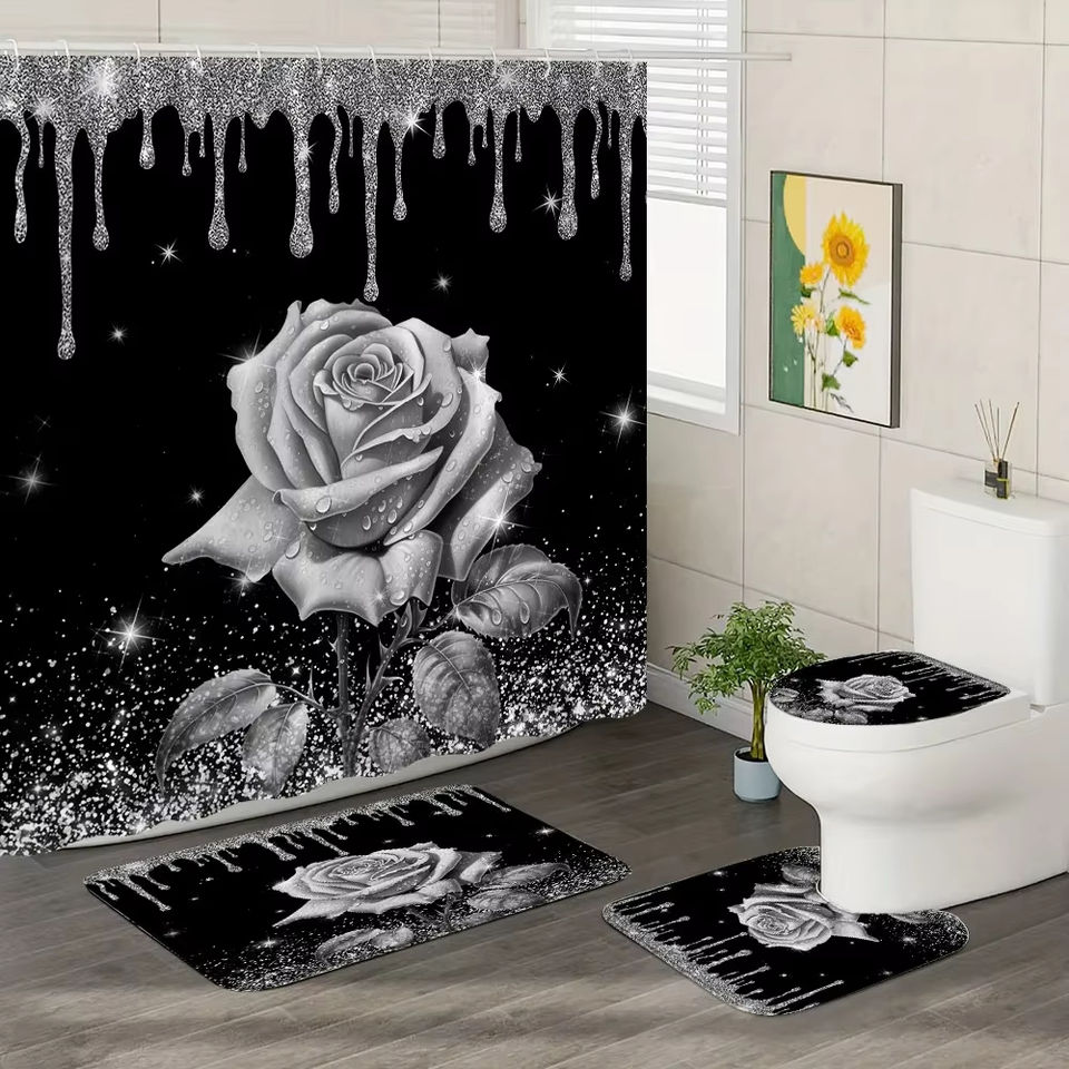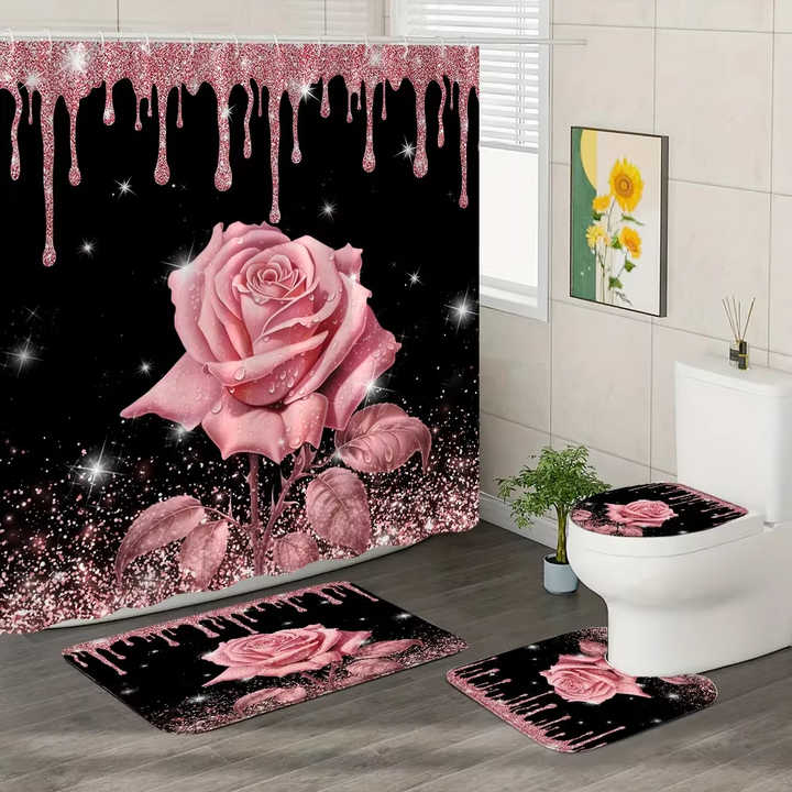 Rosa rosa tenda da doccia e tappeto da bagno Set floreale rosa Glitter tende da doccia tappetino da bagno bagno arredamento bagno con ganci